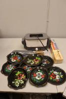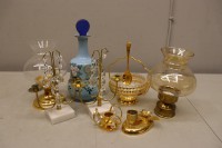 mässing,glasföremål. Bl.a. ljusstakar.