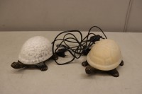 2 Bordslampor. Mässing och glas. L:20 cm.